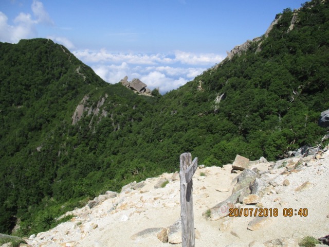 ザレた花崗岩の登りになって来た。先程の岩が遠くに見えます