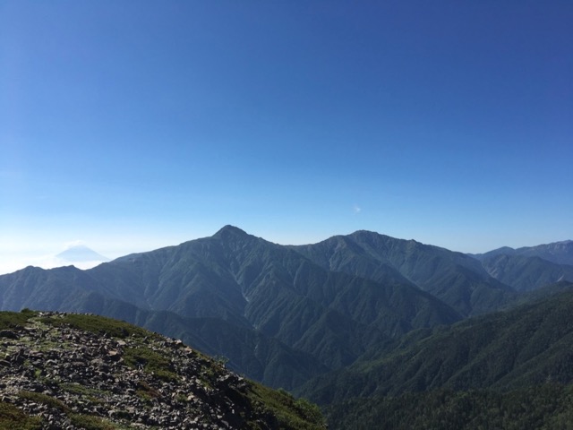 左に小さく富士山、北岳、間ノ岳 日本の高い山1、2、3位が見えます