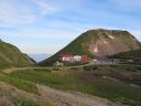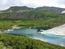 白雲荘で宿泊手続きと昼食を摂ってからのんびり歩き出した。コマクサがいっぱい咲いていた。花を愛でながら、展望を楽しみながら、雪渓を眺めたり会話を楽しみながら山頂へ向かった。本宮の神主さんも社を閉じる時間だった。山頂より眼下に見る池が神秘に感じた。