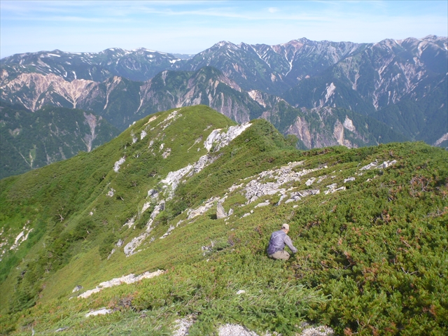 腰までのハイマツ薮を下る