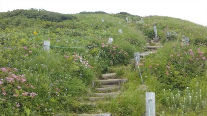 階段の両側がお花畑です