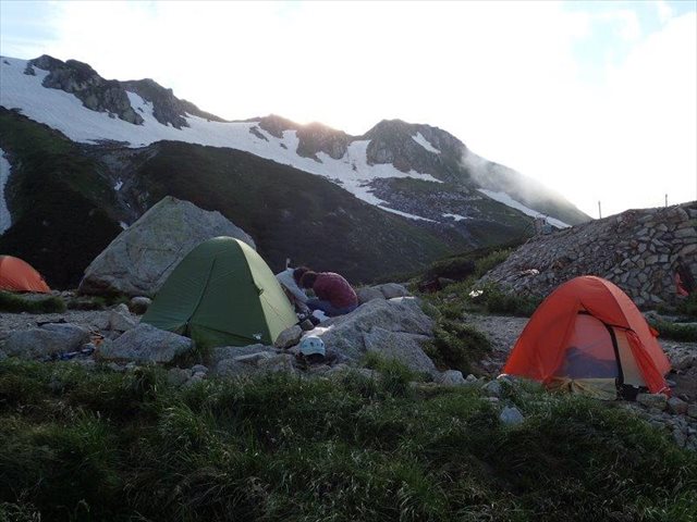 今回はテント二張りの生活ですが翌日は右のテントをIさんが下します