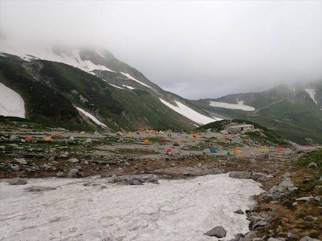 剱沢キャンプ場の全景(上部から)