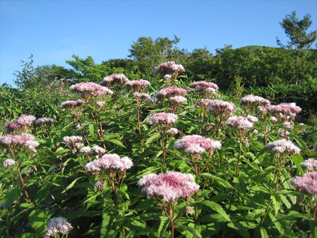 ヨツバヒヨドリを見ながら山の家を出発