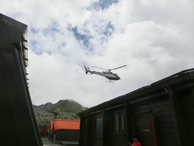 北岳山荘に4回にわたり、ヘリが荷物を下ろしていきました。夜はご馳走が出ました