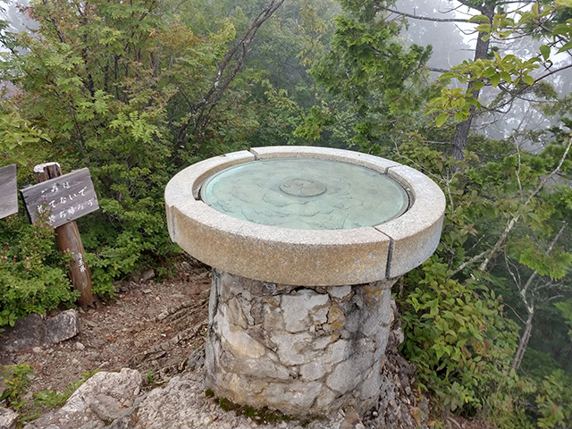 そして天理岳を50m程登り返して頂上に立った頃その時だけ太陽が顔をだし、暫しの休憩を取ることが出来ました。カッパを脱ぐ事も考えたのですが脱がずに出発し、そしてやっぱり雨が降ってきました。