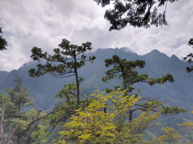 大粒で激しい雨が葉っぱと木を叩く音の中に身を置く自分は只々、尾根線を外さない様に、