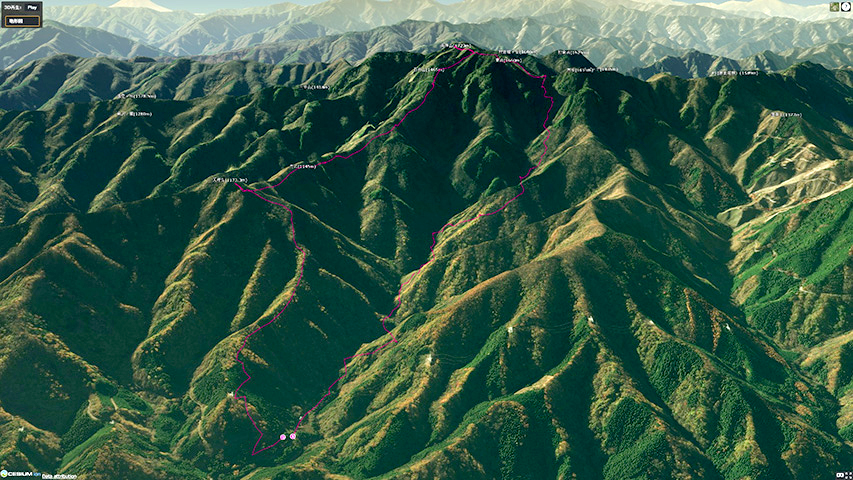 天理岳からの下りの尾根線が別れていて一旦は、間違った尾根に進みましたが、ジオグラフィカでルートをロックしていたお陰でミスコースに気づき、地図で確認して10分ほどのタイムロスでリカバる事が出来ました。(登り返しは辛かったケド)しかし、正しいルートと言え、整備されていない水を含んだ土の下りは物凄く滑り軽量化の為にストックを持って行かなかった自分は木を掴みながら歩を前に進めましたが、その木も腐っている物もあり、決して全体重をかける事が出来ませんでした。