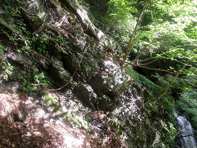 調べて見たら日向大谷登山口が実線ルートで「表登山道」とか呼ばれているらしいのですが、クサリが少ないって、書いてある(。???)。。。