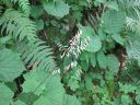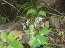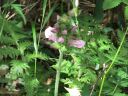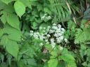 身支度しおじさま達に見送られ出発!登山口に入ろうとすると、ぬかるんでいたのでスパッツをつけ再度出発。樹林帯の道が始まります。ぬかるみには丸太を輪切りにした木が敷いてありますが、これはこれで滑りそうです。時々咲いている花を撮りつつ、ゆっくり登っていきました。撮った花を並べてみれば、いろいろ咲いていたように見えますが、花の最盛期は過ぎてしまっています。が、花がないということは虫もいない、虫除けネットもかぶる必要もないということで快適です。花以外にも川音やトンボ、蝶、鳥の鳴き声に気を紛らさせ、暑さの中登っていきました。
