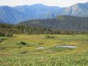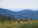 翌朝はいい天気で佐武流山、鳥甲山、平標・仙ノ倉山など近くの山はもちろんのこと、赤城連山、妙高・火打山、北アルプスの山々まで見渡せました。6時の朝食はバイキング形式でした。朝食後、たくさん写真を撮りながら、幸せな気分で湿原を歩きました。湿原を過ぎるとひたすら下りです。登る時より足場は悪く感じ、集中して下っていきました。3合目駐車場に着きお疲れさま~。さて下山後はお決まりの温泉♪小赤湯温泉の楽養館に入りました。楽養館の温泉割引券は山頂ヒュッテで購入済です(500円のところ400円)。ここのお湯は湧出口では無色透明ですが、浴槽内では酸化して赤褐色をしています。パキパキ割れる湯の花が湯に浮かんでいるだけでなく、浴槽底にもあり変な感じでしたが、なかなかの温泉でした。山小屋でも一緒だった2パーティーに会い、いい山でしたねと思いを共有しました。食堂で昼食を食べると窓からの風が気持ちよすぎていつまでもここに座っていたい気分になりました。