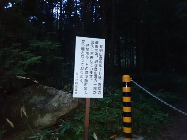 有明神社からの表参道コースも手ごわいルートだそうで、この山はどこから登ってもなかなかハードな山行になると思った。松川ルートからは結局11時間の山行になった。