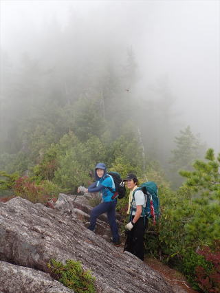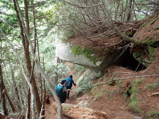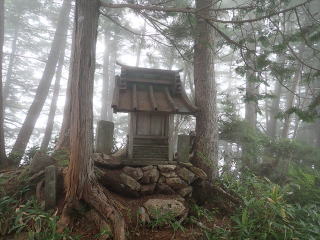 南峰を目指しますがここもなかなかハード 南峰までの途中の祠