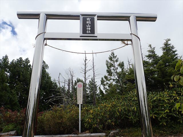 有明神社からの分岐、落合からはルートはわかりやすいのだが意外と険しくロープやはしごや鎖をたどって山頂を目指した。山頂には立派な鳥居があって信仰の山だということがよくわかる。