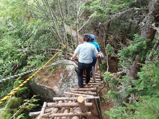 レトロな手作りの梯子ですが有難い。 落合からは表参道を歩く
