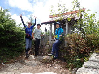 避雷針になっている鳥居でした 北峰頂上の祠の前で記念撮影