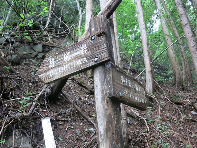 獅子岩への分岐を右に行く(左は屏風岩直下へ)
