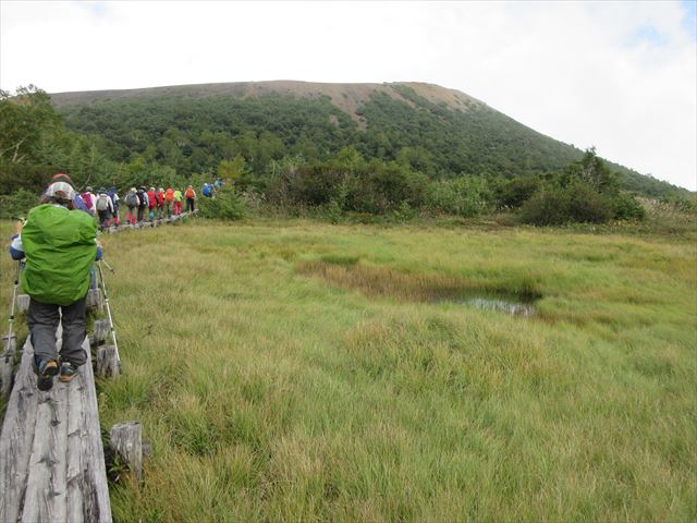 木道の上を一列に