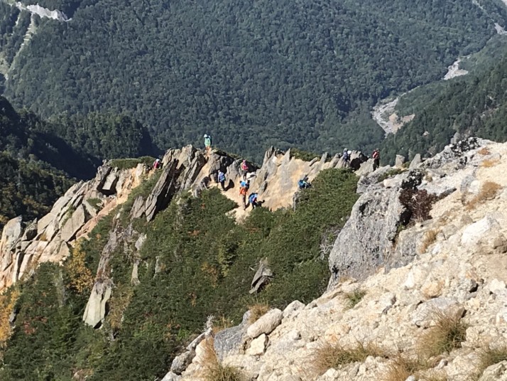 駒津峰からゴジラの背のような岩場をガシガシ登る