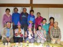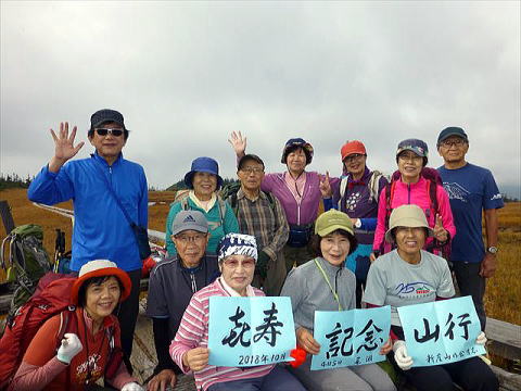 竜宮小屋前で昼食、2時頃小屋に到着。風呂、夕食の前に喜寿の祝いの宴が開かれ、K氏のご尽力、Tさん、Kさんの楽しいイベントに盛り上がり楽しい一時になる。