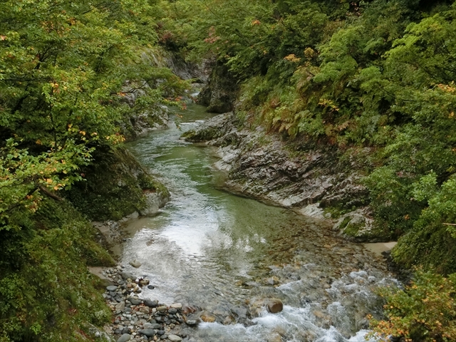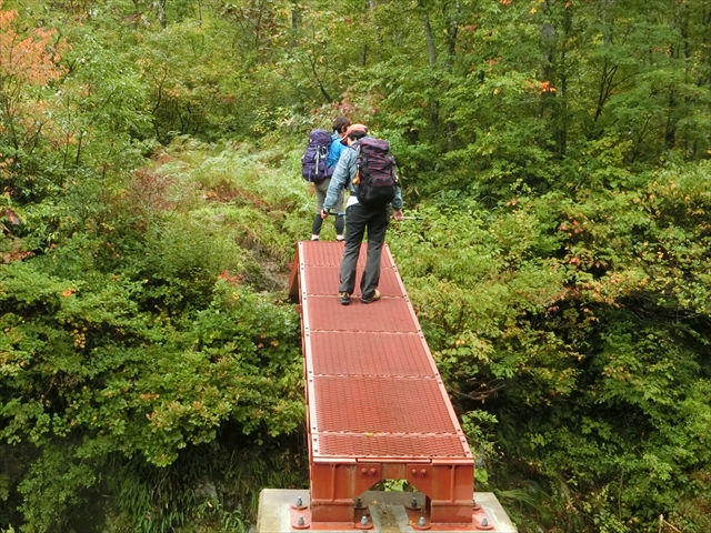 何回か(多分5回)渡渉し、赤い橋を渡ります。最初の徒渉はジャンプ、最後の徒渉は靴を濡らす覚悟が要ります(大丈夫でしたが)。沢は結構な水量があります。