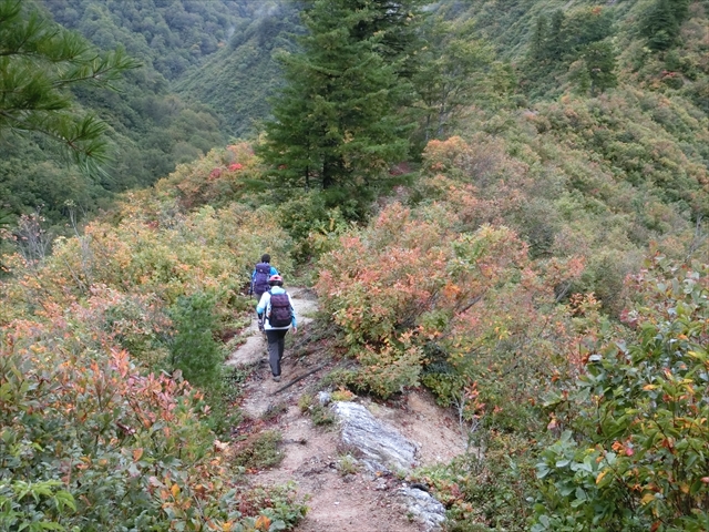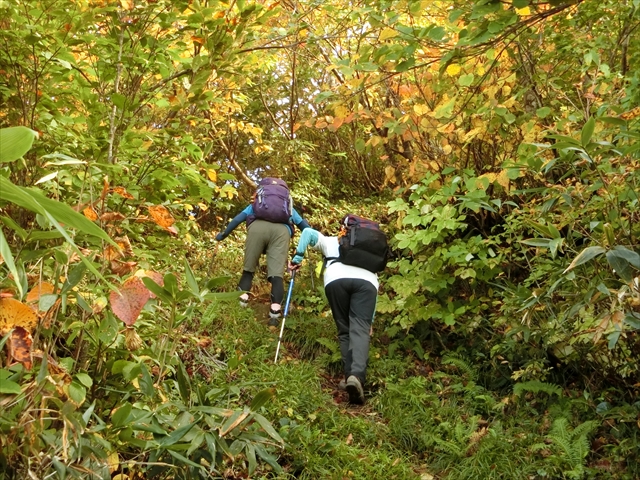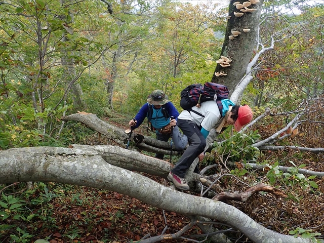 ここから先が急登で大変でした。台風の影響でしょう、何本も木が倒れて道を塞いでいました。マムシがよく出るそうですが、この季節には出てこないようです。