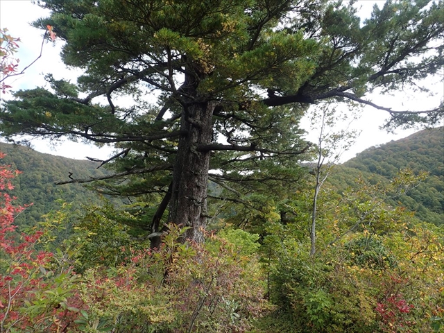 松の木のダワまで急な下りです。ここのコルには立派な松が何本もありました。