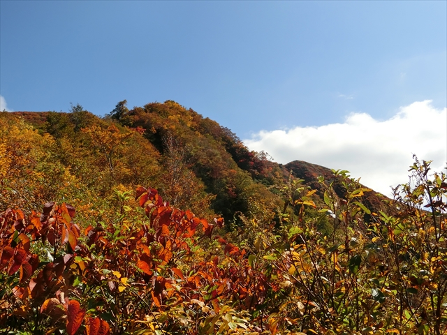 急登の先は紅葉のご褒美が待っていました。青空に映えてとてもきれいです。