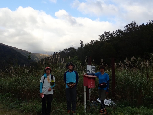 (8日)曇時々晴れ 奥只見シルバーラインのトンネルの途中にある泣沢避難口が登山口入口で、シャッターを開けると駐車場、ちょっと先が登山口です。トンネルの途中なので、分かりにくいです。