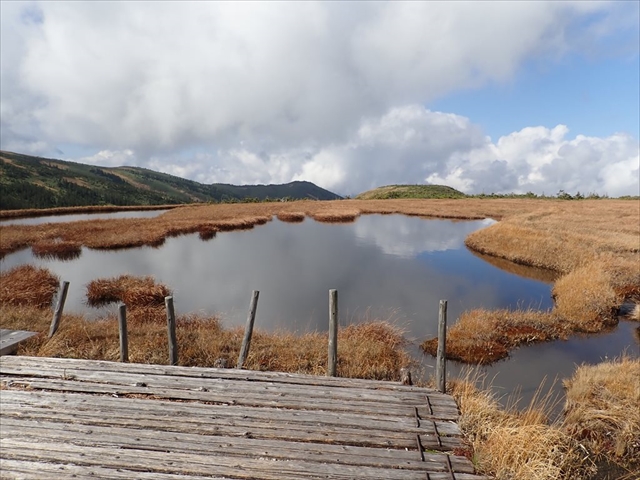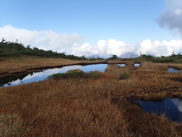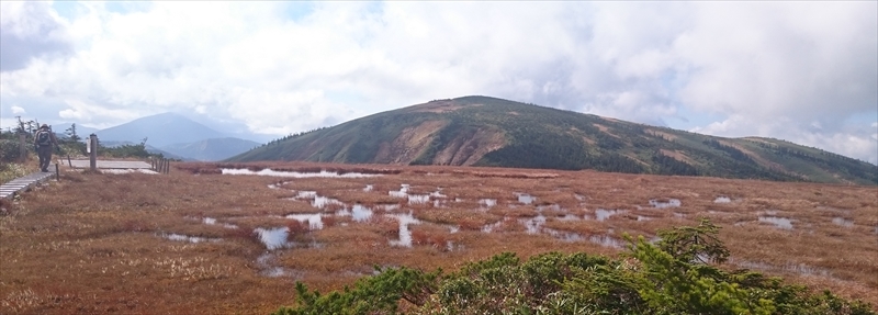上まで登ってしまえば、木道が整備されていました。名前の通り、平らな山頂には池塘が広がります。