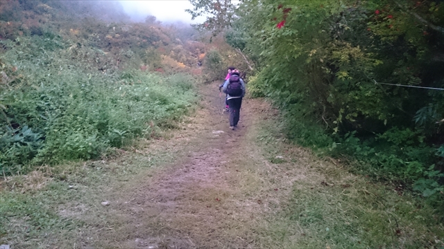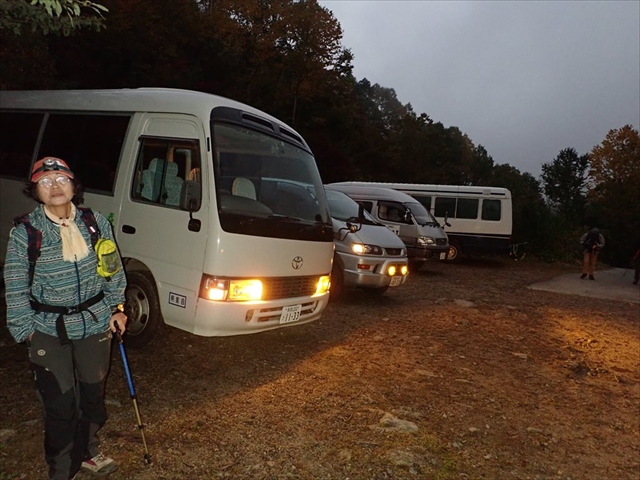 (9日)晴れ時々曇 民宿の送迎車で4時に出発し、中ノ岐登山口に向かいます。通称プリンスルートを登ります。ゲートから先は一般車立ち入り禁止、鞭打ち症になりそうです。予定の5時半より少し前に到着すると、平日というのに各民宿の車が勢揃い、今年一番の盛況だとか。登り口は平坦ですが、かなりの急登が続きます。