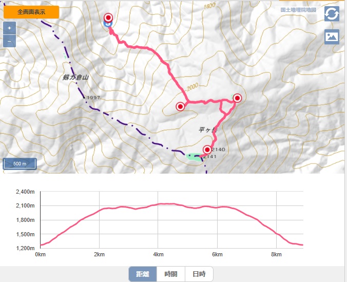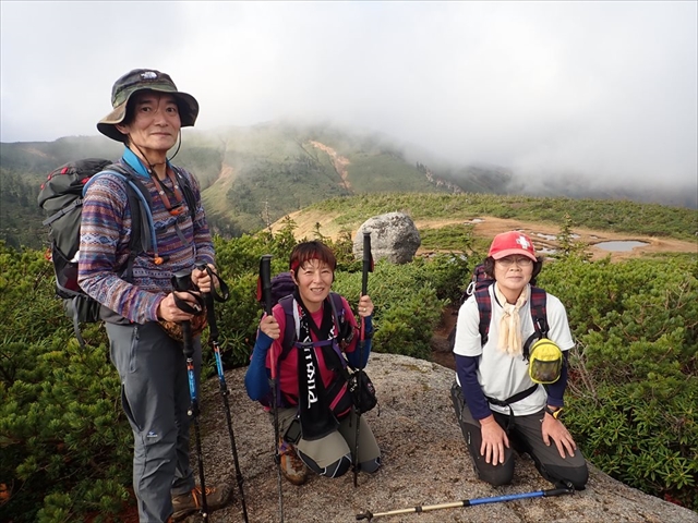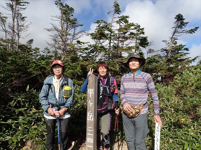 (9日)平ヶ岳:樹湖里 4:00 ~ 5:15 中ノ分登山口 5:35 ~ 玉子石分岐 7:55 ~ 8:02 玉子石 8:10 ~ 9:00 山頂 9:15 ~ 姫ノ池 9:45 ~ 玉子石分岐 10:05 ~ 11:40 中ノ分登山口