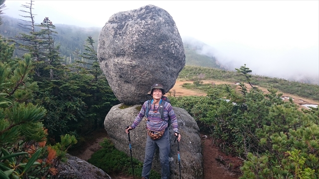 登山道から少しそれたところに玉子石があります。かなり大きな石です。