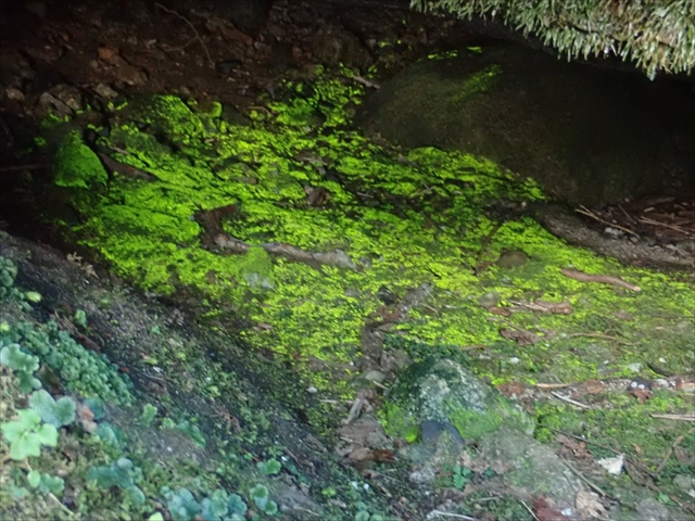 沢の手前にヒカリゴケがあったので、寄ってみます。