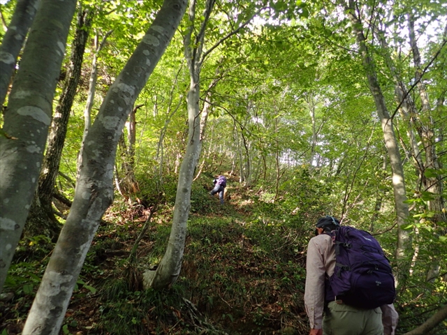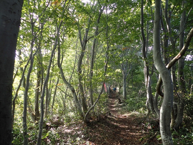 由緒ある曹洞宗・慈光寺を過ぎ、登山口からはいきなりの急登で三合目着、あとはブナ林の中を快適に登ると