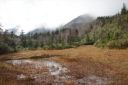 ビジターセンタ内を覗いて、栂大門駅まで散策しながら下ることに、大経大白馬ヒュッテを過ぎて早大小屋を経て“神ノ田圃”に寄り、草紅葉の湿原とダケカンバの美しい林相をしばし楽しんで、午前中の雨で潤った瑞々しい紅葉の風景を愛でながらの散策下山も楽しいひと時であった。
