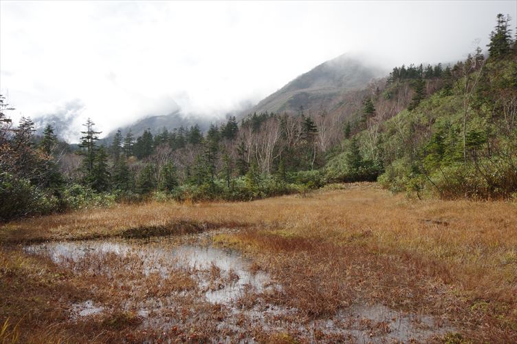 雨雲流れる白馬・山荘前の湿原