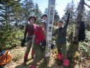 何しろ長い道のりだった。西赤沢源頭までたどり着き、そこからしばらく登ると、稜線上に佐武流山の頂上らしい山が見えてきた。頂上近くは、稜線の内側をたどっていく感じで、突然佐武流山頂上が現れた。