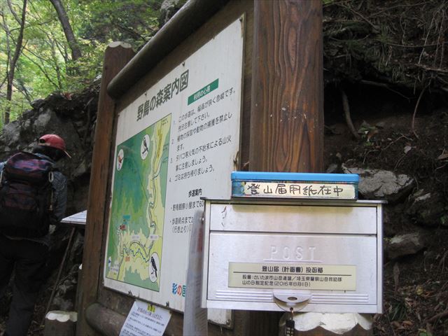 お疲れ様~(*^^)v 看板と登山届ポストのある登山口へ到着