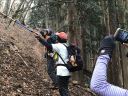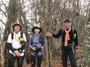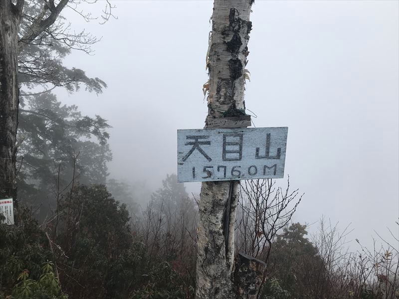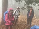 小雨も降ってきたので、休憩を早めに切り上げて天目山目指して出発! ・・・と意気込んだのですが、山頂までとんでもない急登が待っていました (T_T) なだらかな尾根歩きの後の急登はこたえましたが、無事天目山に到着~!小雨の中、昼食中の登山者の方に全員写真を撮ってもらい、早々に下山。一杯水避難小屋でゆっくりと昼食をとりました。「避難小屋があって良かったねぇ~」としみじみ。。。