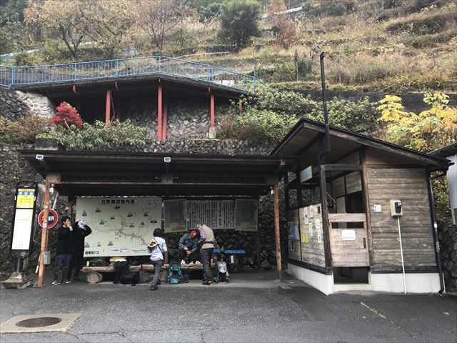 バスを待つ間に荷物整理 屋根付きのバス停は有難いですね!