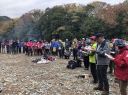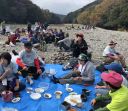 嵐山渓谷バーベキュー場では、三人のお姉さま方が、車で調理器具、食材を積み先に来て、けんちんうどんを調理してくれていた。そのほかにも、煮卵、かぶの漬物、茄子の和え物、ジャガイモの煮っころがしなどの、愛情のこもった家庭料理に舌鼓する。このような広々とした河原で飲む酒は、格別である。みな笑顔で酒を飲み交わしていた。他の会の鍋料理も舌鼓、石狩鍋、キノコ汁、すいとん、はっと汁、お汁粉と、どの鍋も美味しくいただけました。