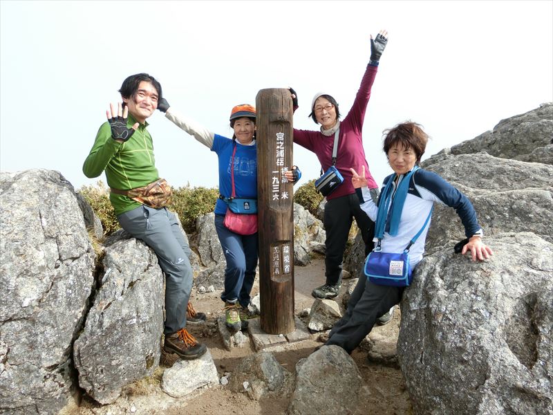 宮之浦岳に到着、1936m。重い荷物を背負って頑張りました。