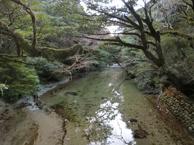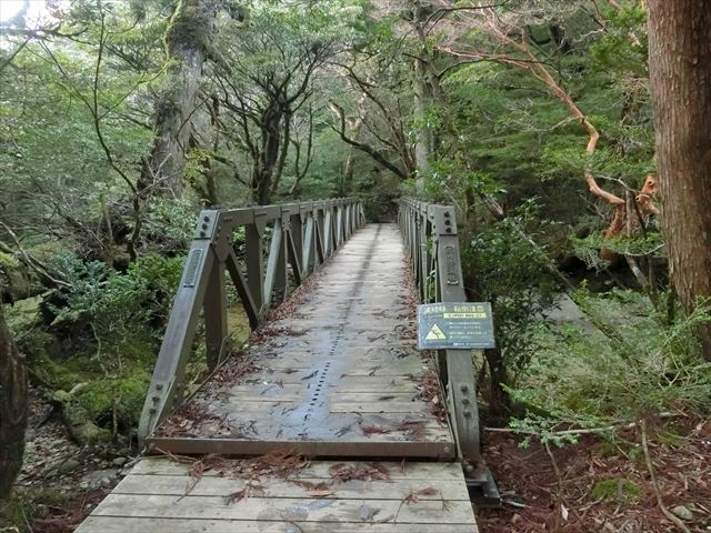 小屋の横を流れる淀川です。明日はこの橋を渡って、宮之浦岳に向かいます。