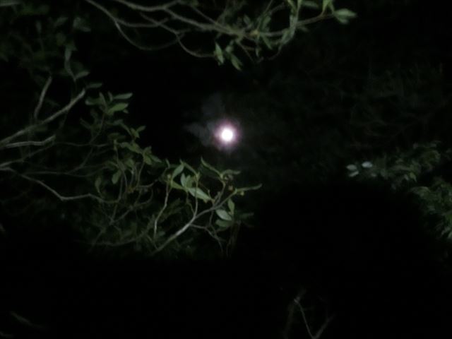 23日(金) 晴れ 今日は長丁場なので、4時半に淀川小屋を出発。小屋の外の気温計は零度と冷え込んでいました。冷たい空気の中、闇夜に浮かぶ月がきれいです。