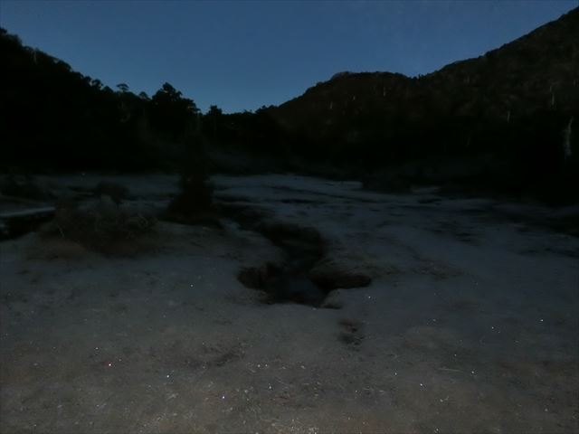 小花之江河、花之江河はまだ暗くてよく分かりませんが、白いのは霜が下りているようです。ここは高層湿原で、いわば尾瀬と同じだそうです。