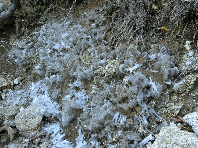 それより大変だったのは、道が所々凍っていること。黒味岳の往復だけでなく、ここから先、岩が凍っていたり、木道が滑ったりと歩きにくいところがあり、転ばないように気を遣いました。