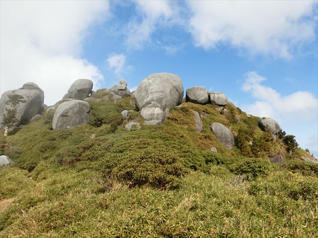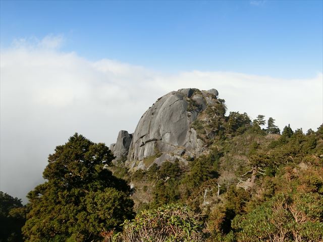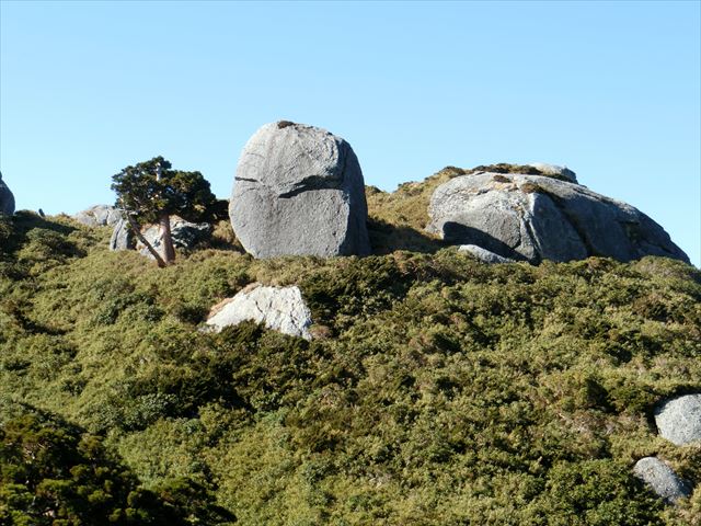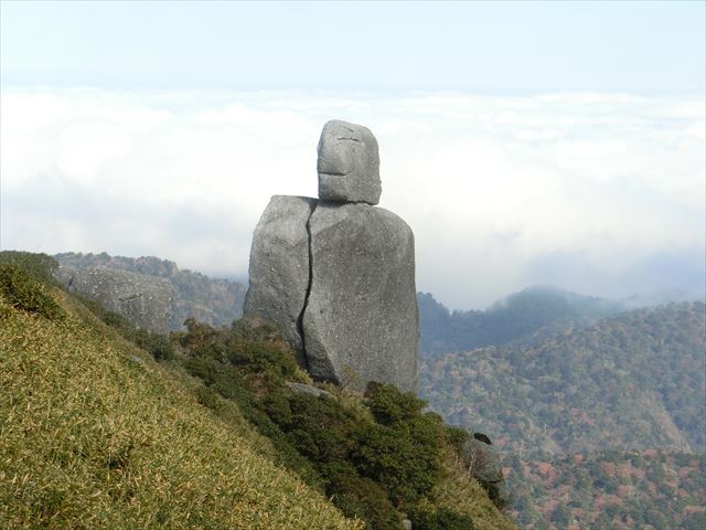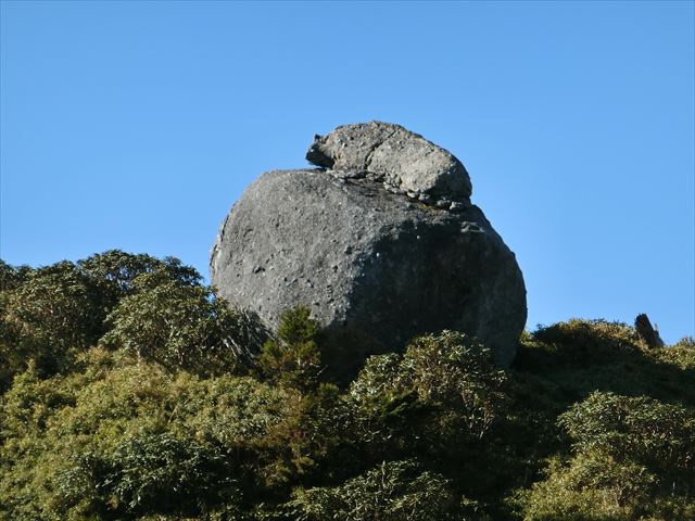 黒味岳分岐まで戻り、宮之浦岳を目指します。次第に、屋久島名物?色々な形をした巨岩が姿を現しました。右の写真は、寝ぼけまなこのウルトラマン。