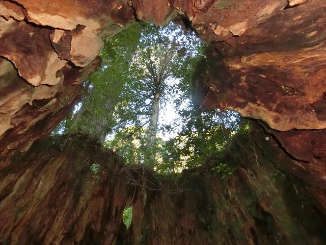 くぐり杉をくぐるAリーダー。ザックが引っ掛かっていませんか?