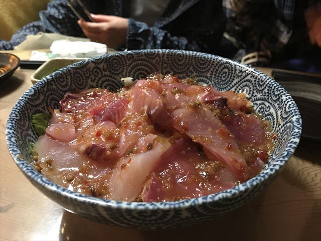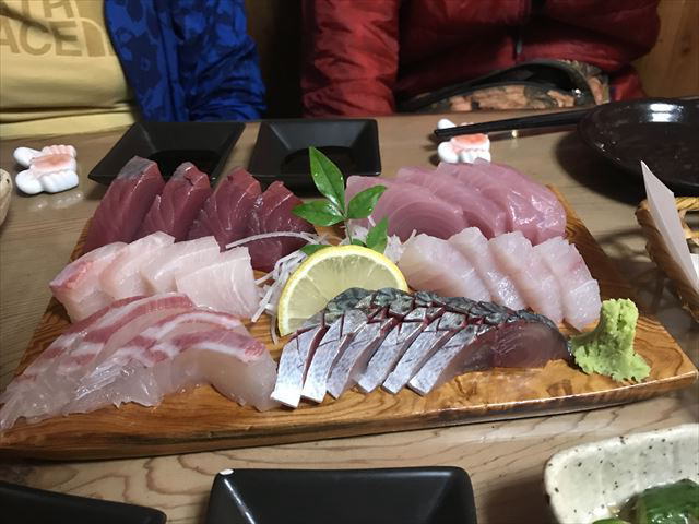 夜は、宮之浦地区の「地魚料理 若大将」で地魚を楽しみました。予約で満席です。ヅケの盛り合わせのように見えるのは、海鮮サラダ、野菜より海鮮の方が多かったかもしれません。